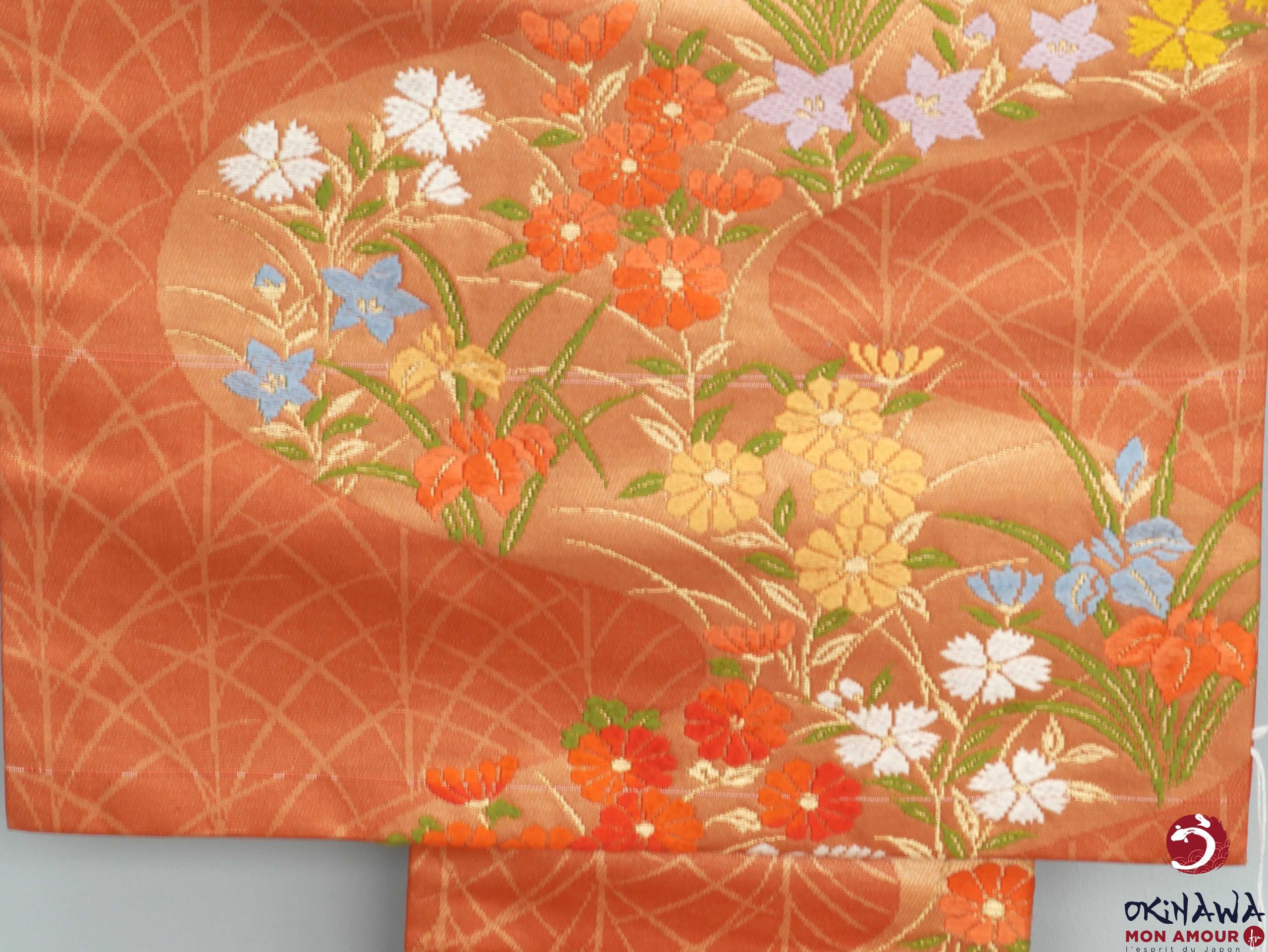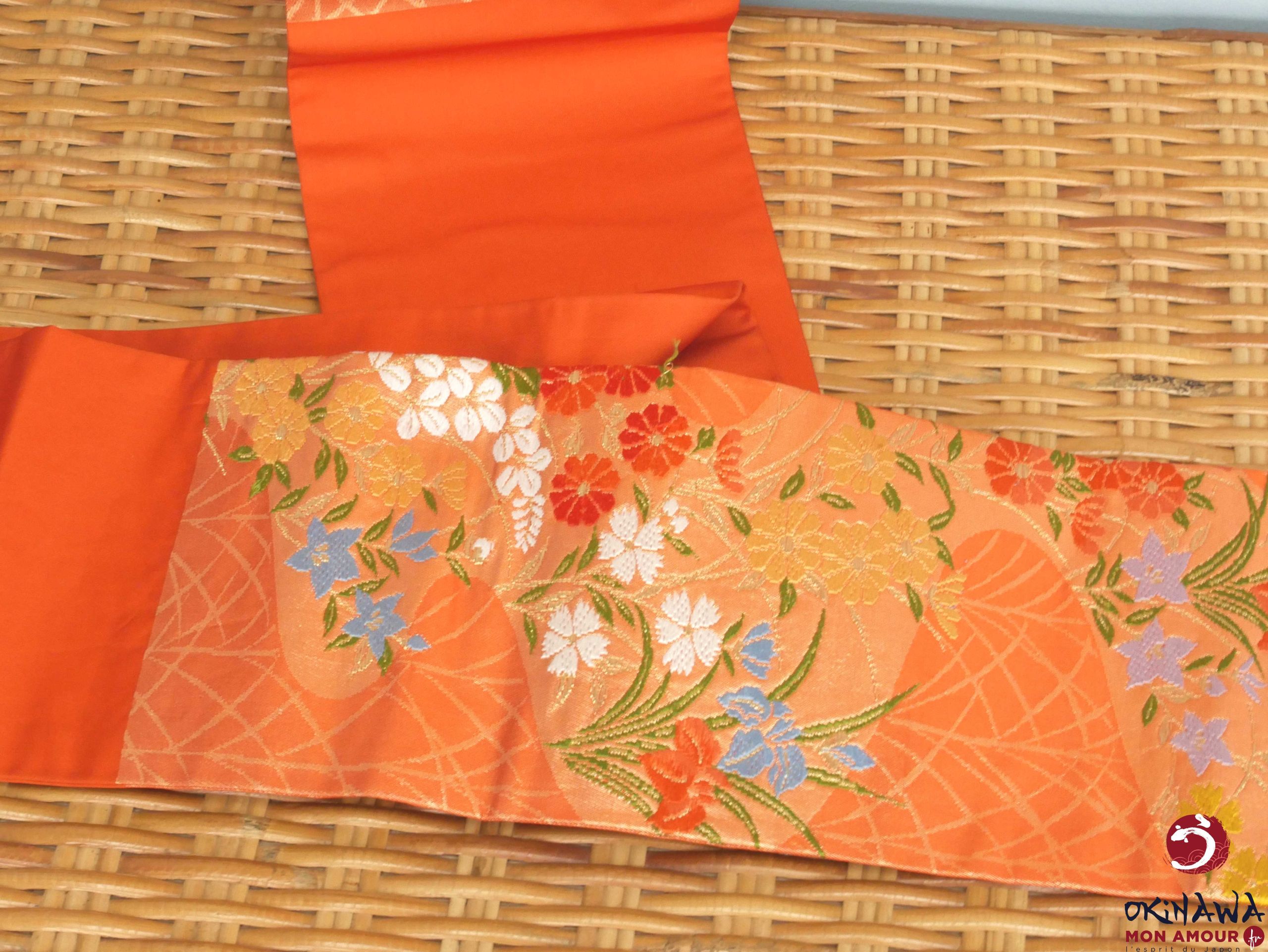 Ceinture kimono Nagoya Obi – Orange fleurs