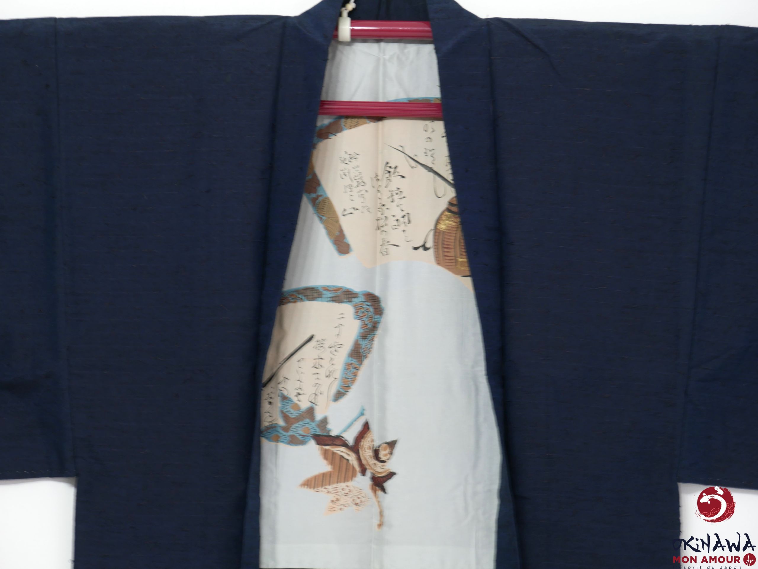 La doublure intérieure est en soie montrant deux éventails stylisés comportant des kanjis et des objets traditionnels.