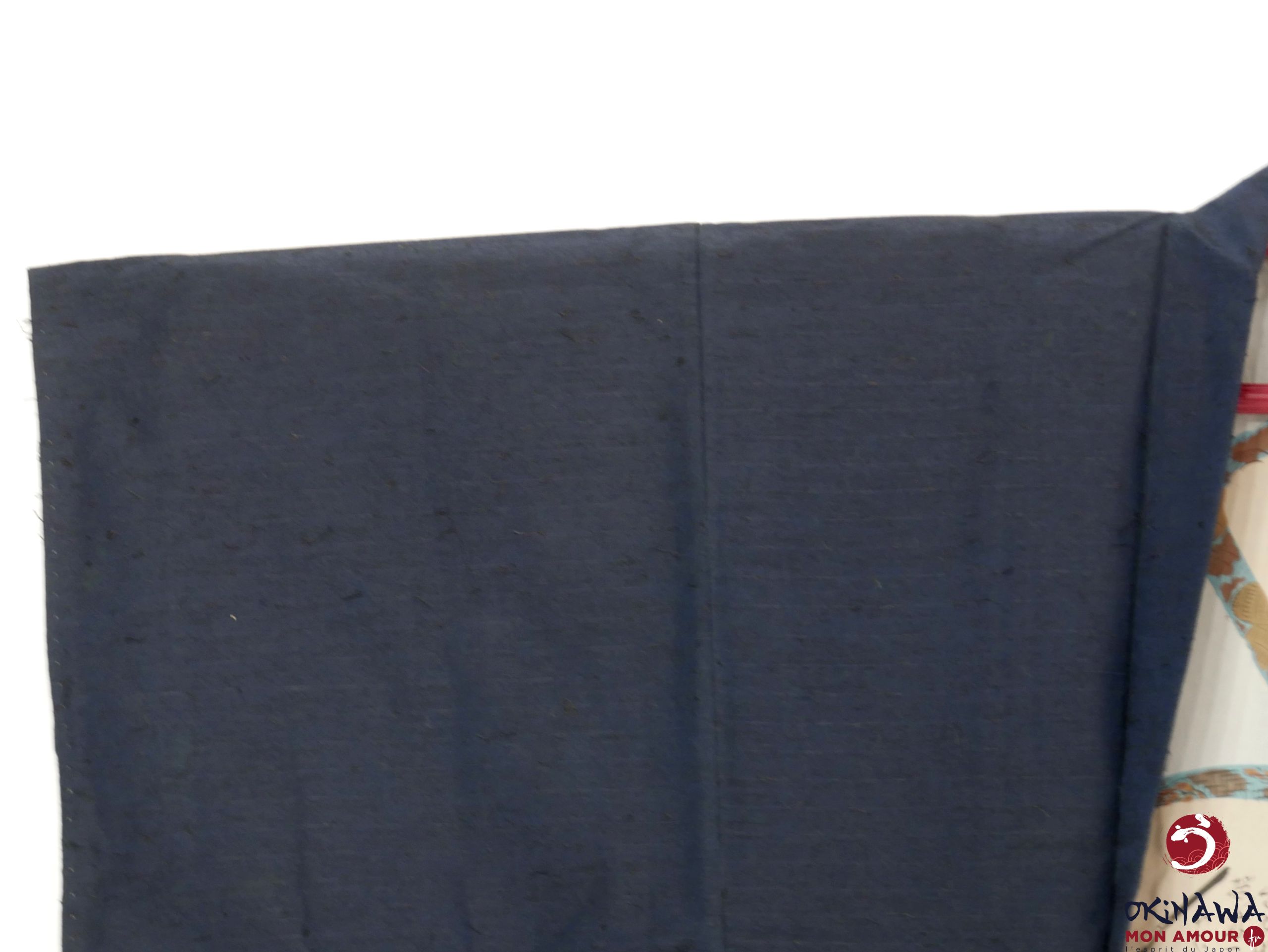 Haori homme japonais traditionnel, en soie bleu lisse à motif écailles de tortue, tissage Omeshi.