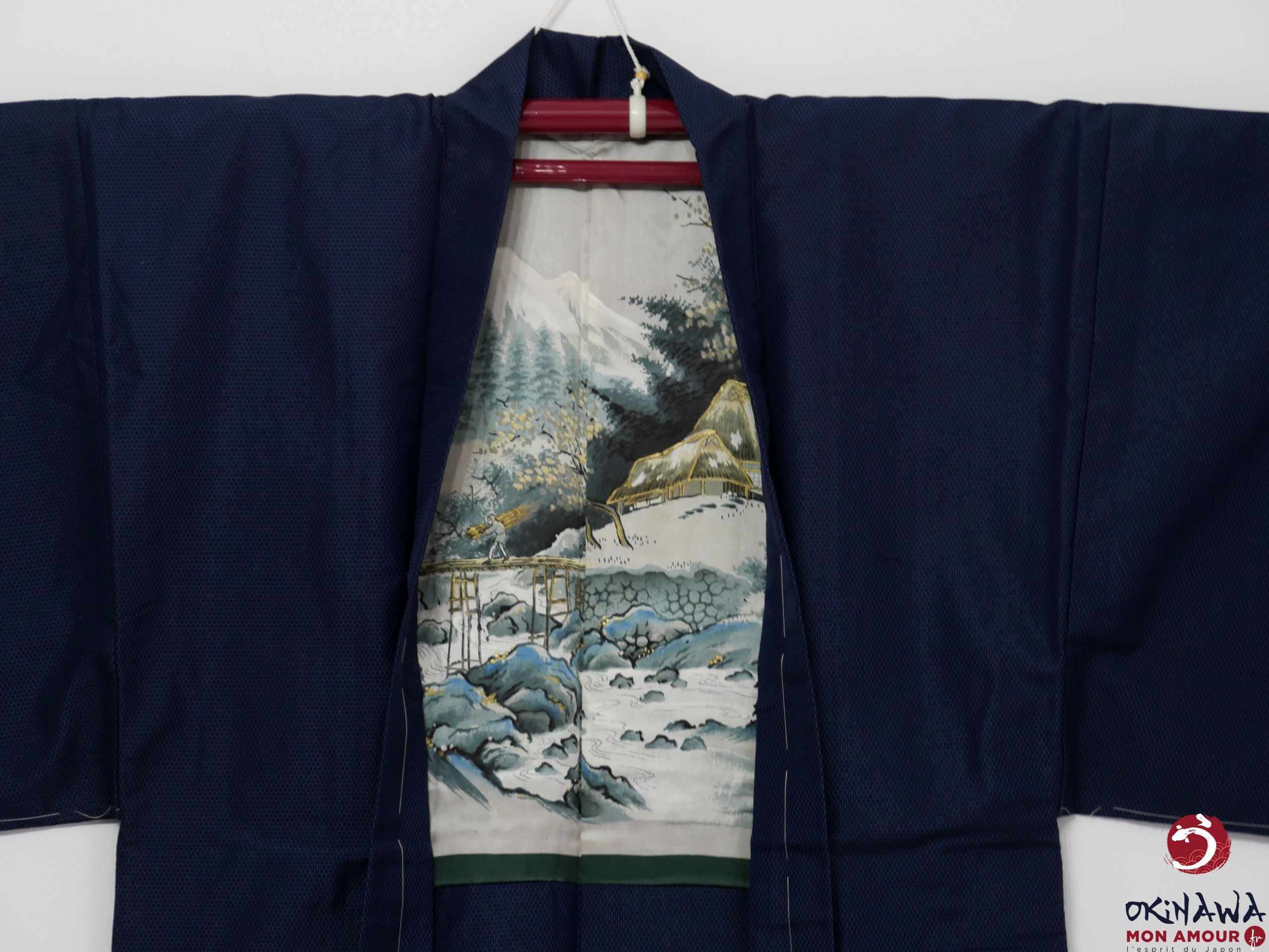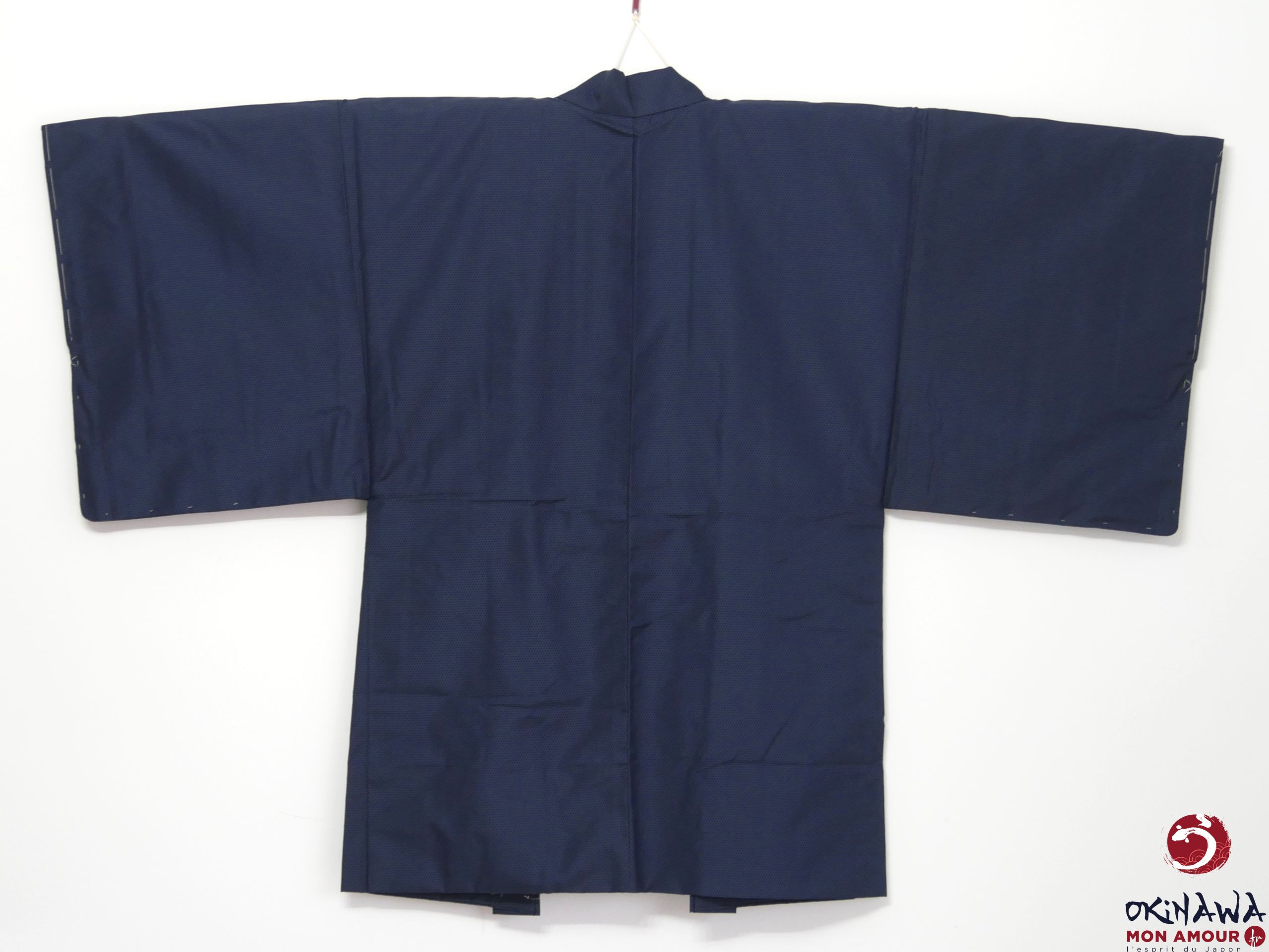 Haori homme japonais traditionnel, en soie, bleu à motif écaille de tortue.