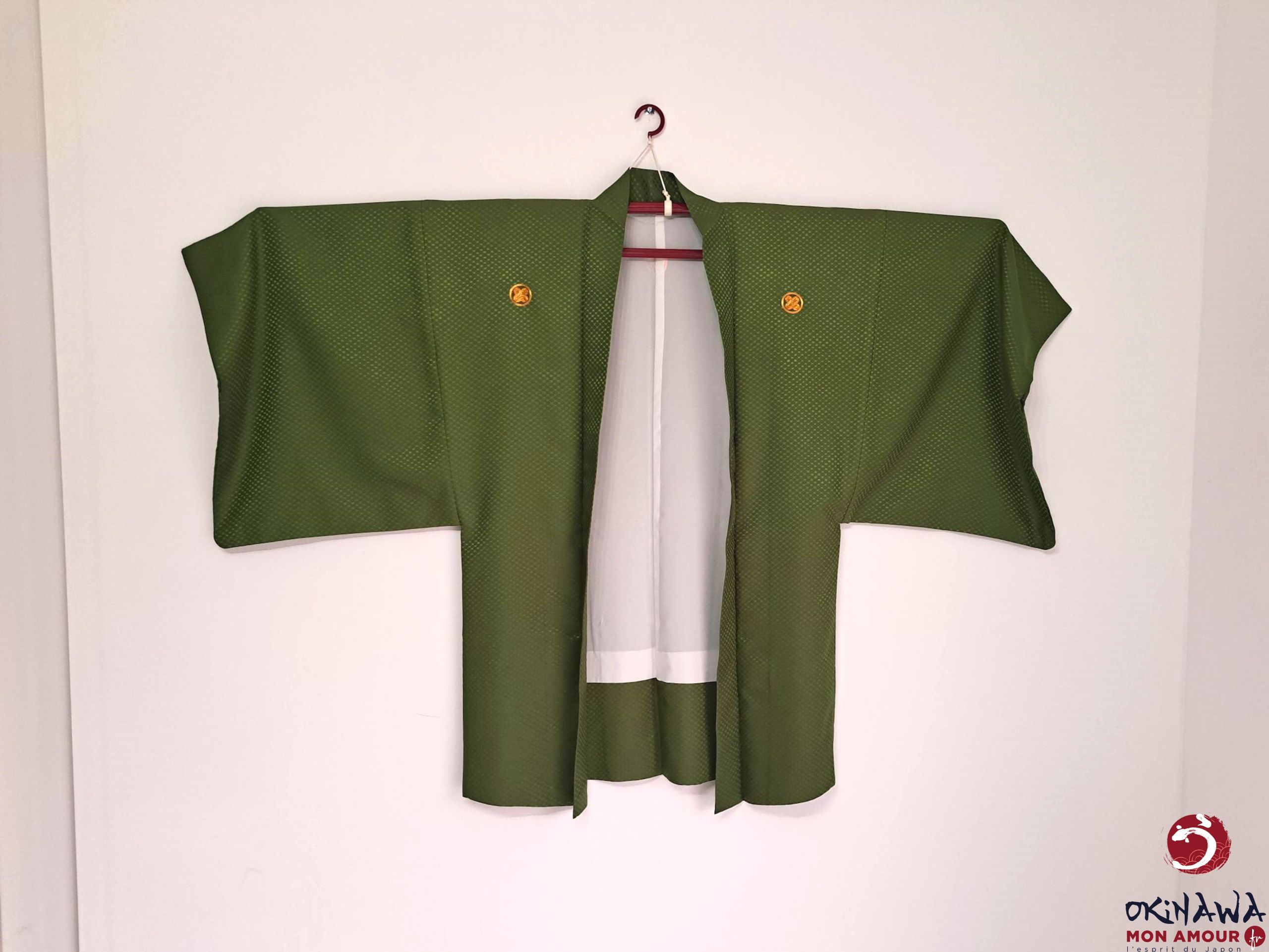 Que ce soit pour hommes ou femmes, les pans du haori ne se croisent pas devant. Ils sont maintenus en place à l’aide d’un himo (cordelette en soie) simplement tissée ou décorée d’ornements divers.