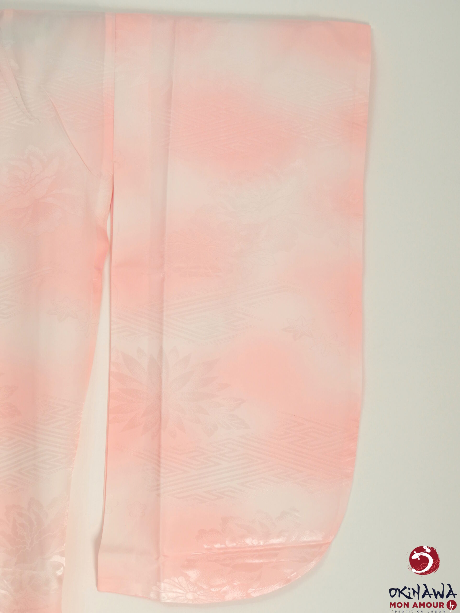 Juban femme rose japonais traditionnel – Pivoines et motifs géométriques – 140cm