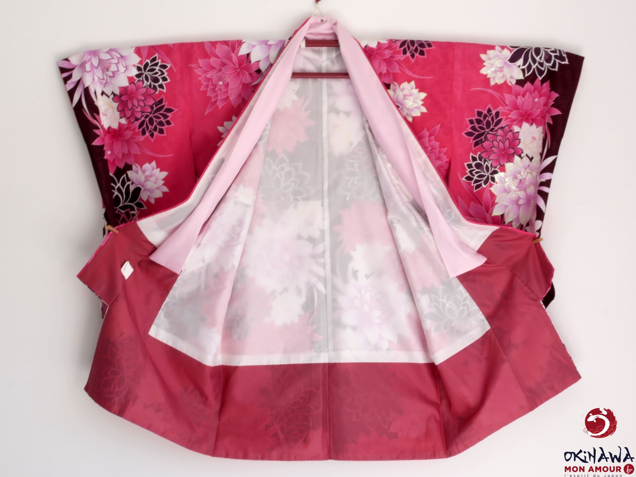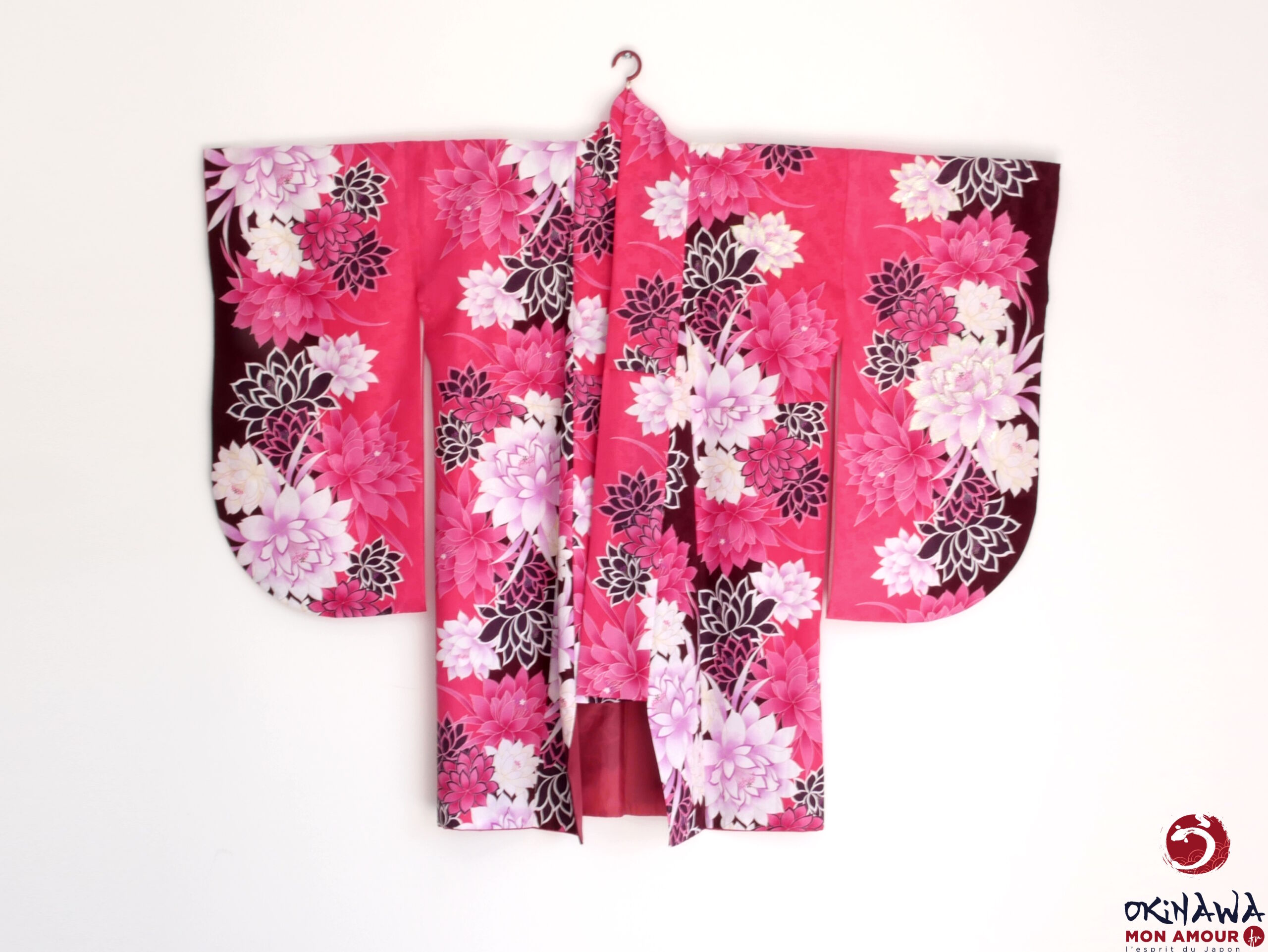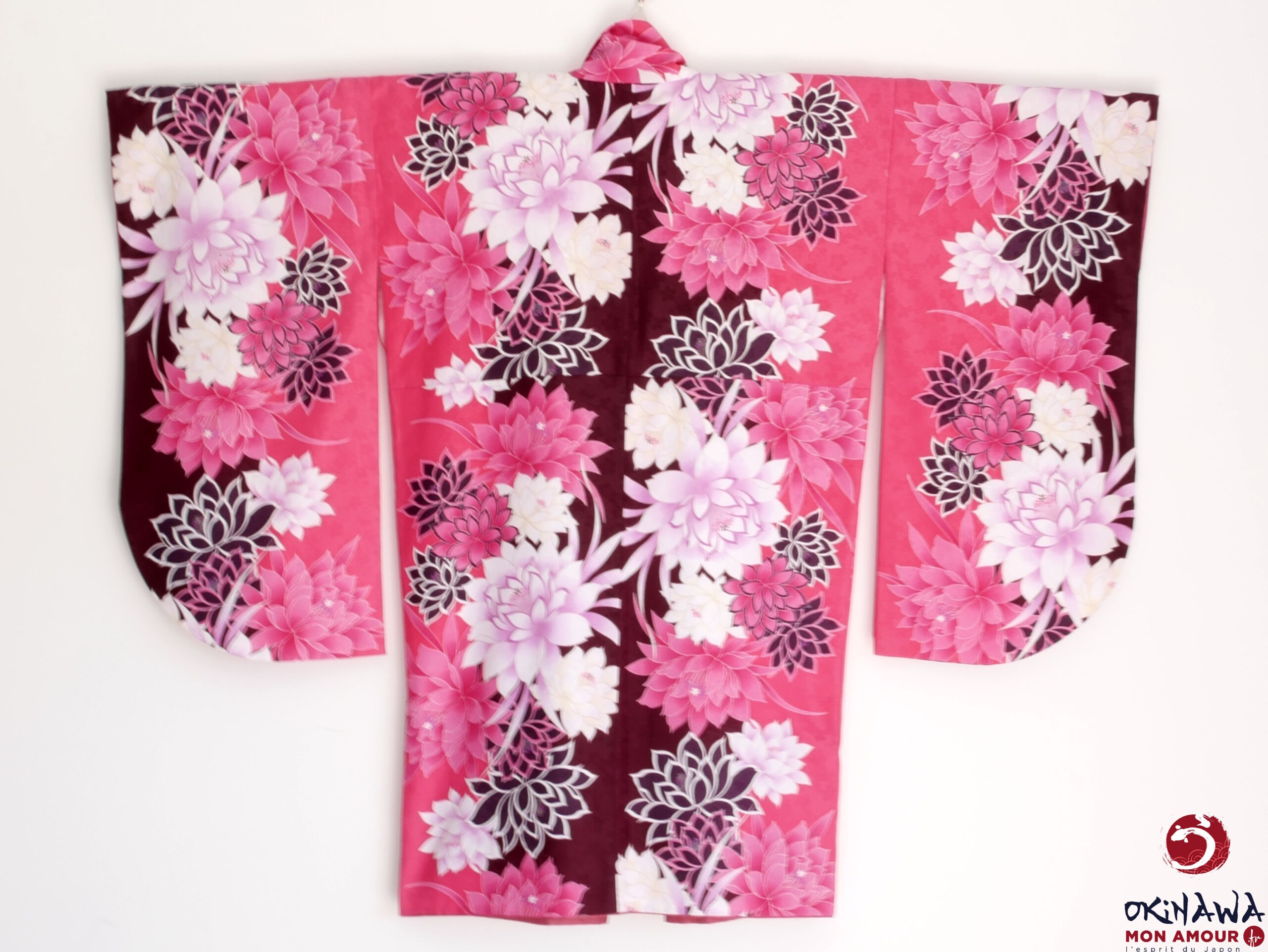 Okinawa-mon-amour-Vêtement-femme-japon-traditionnel-kimono-japonais-moderne-court-fuchsia-fleurs