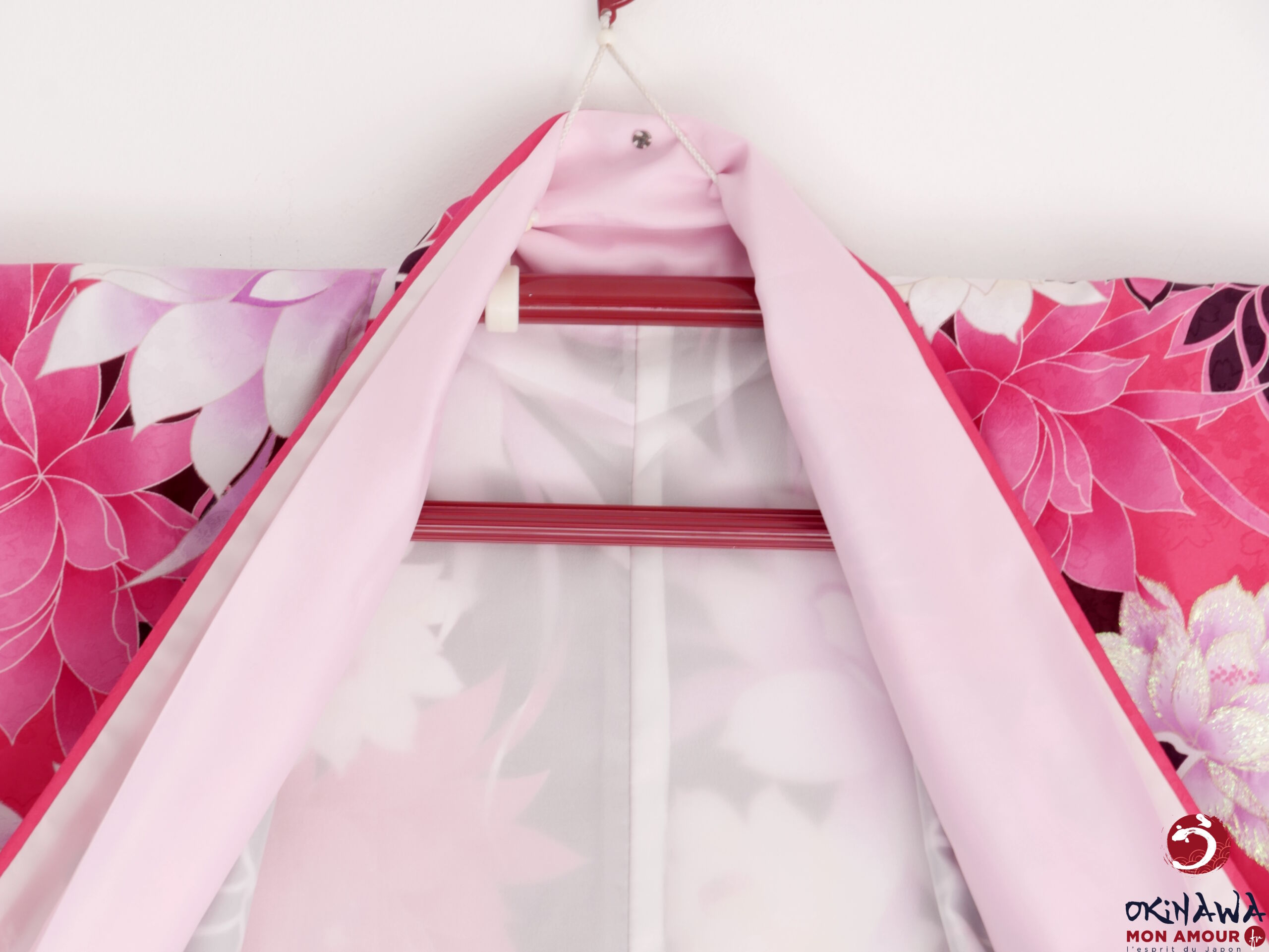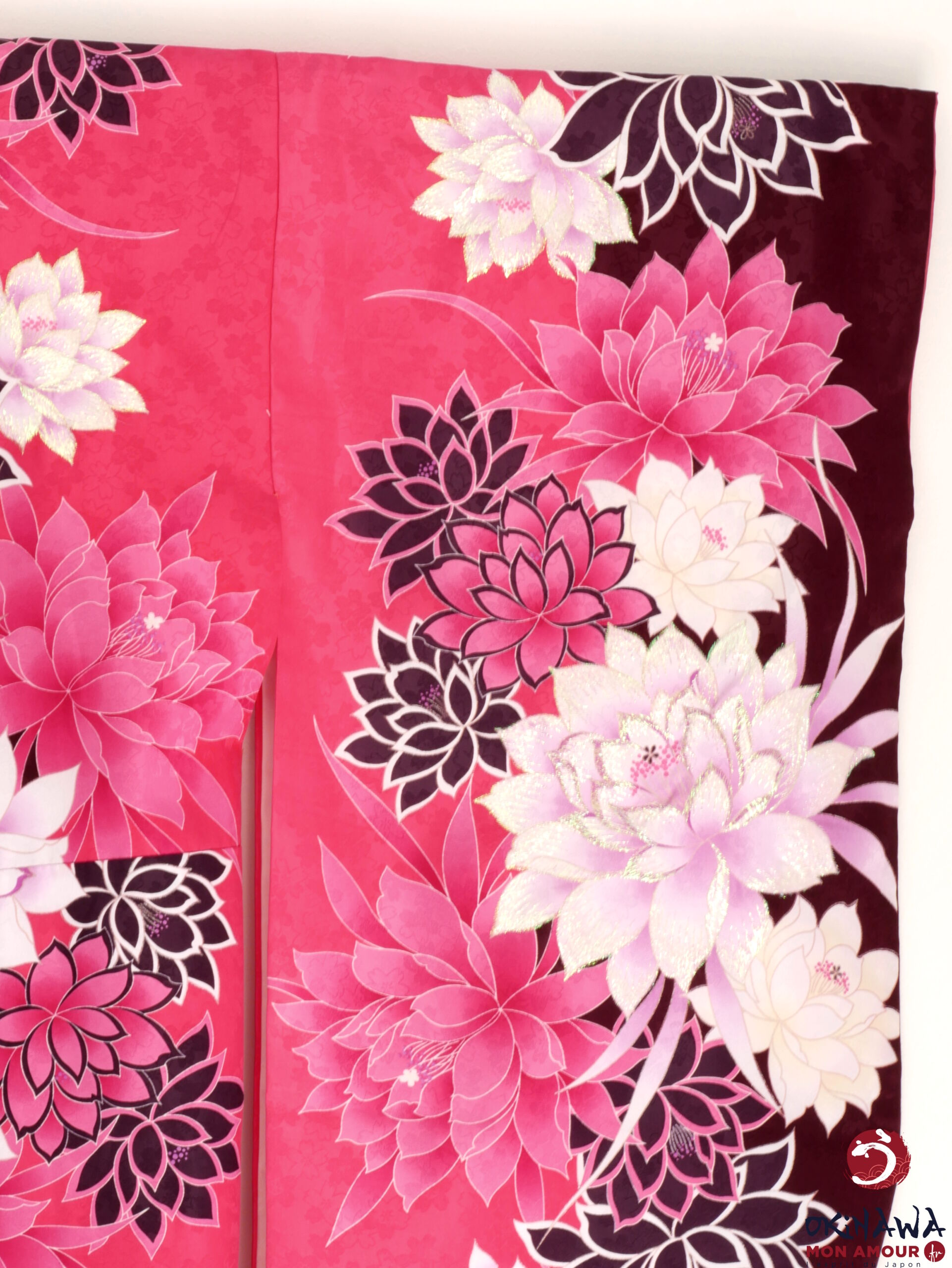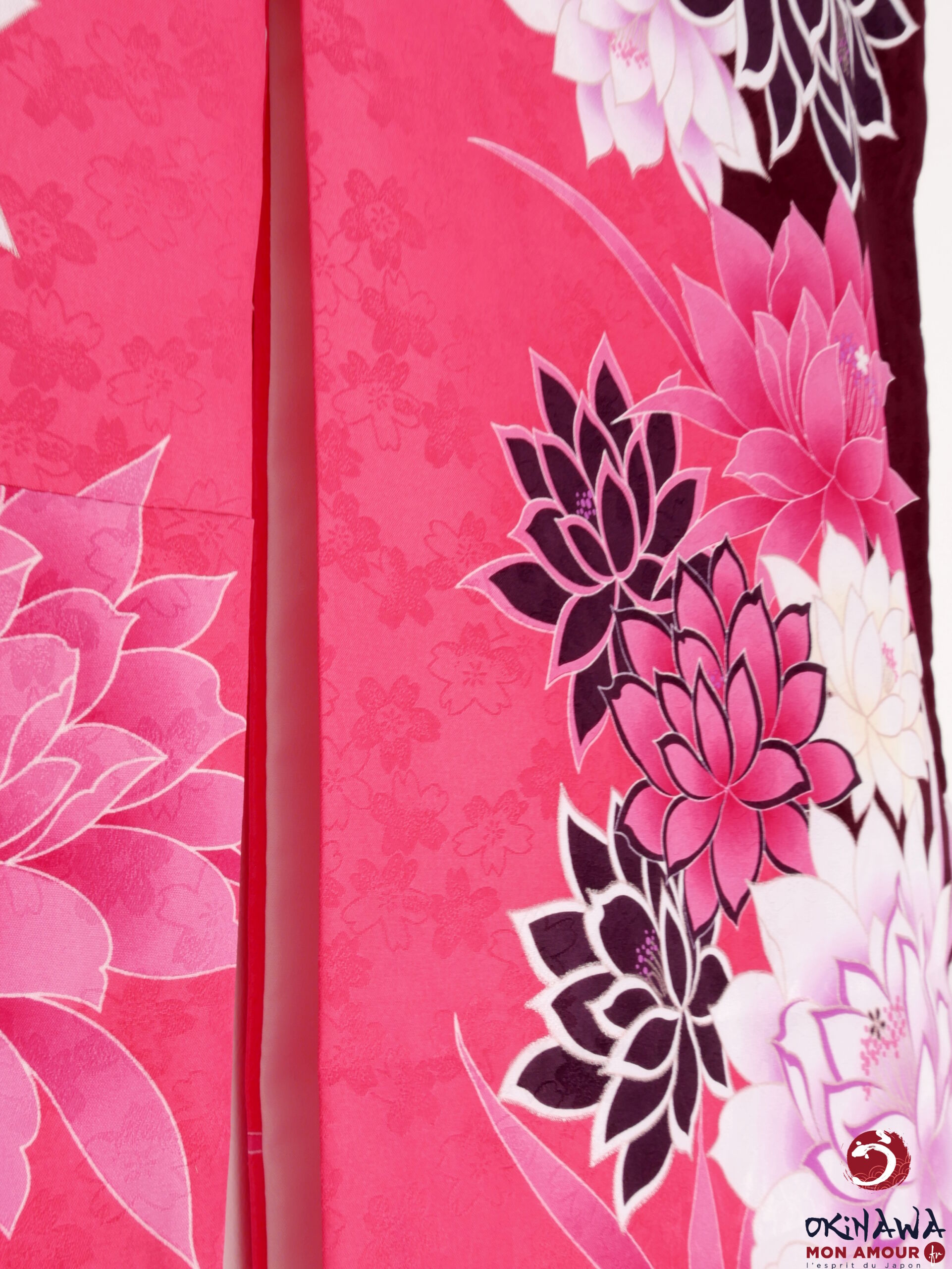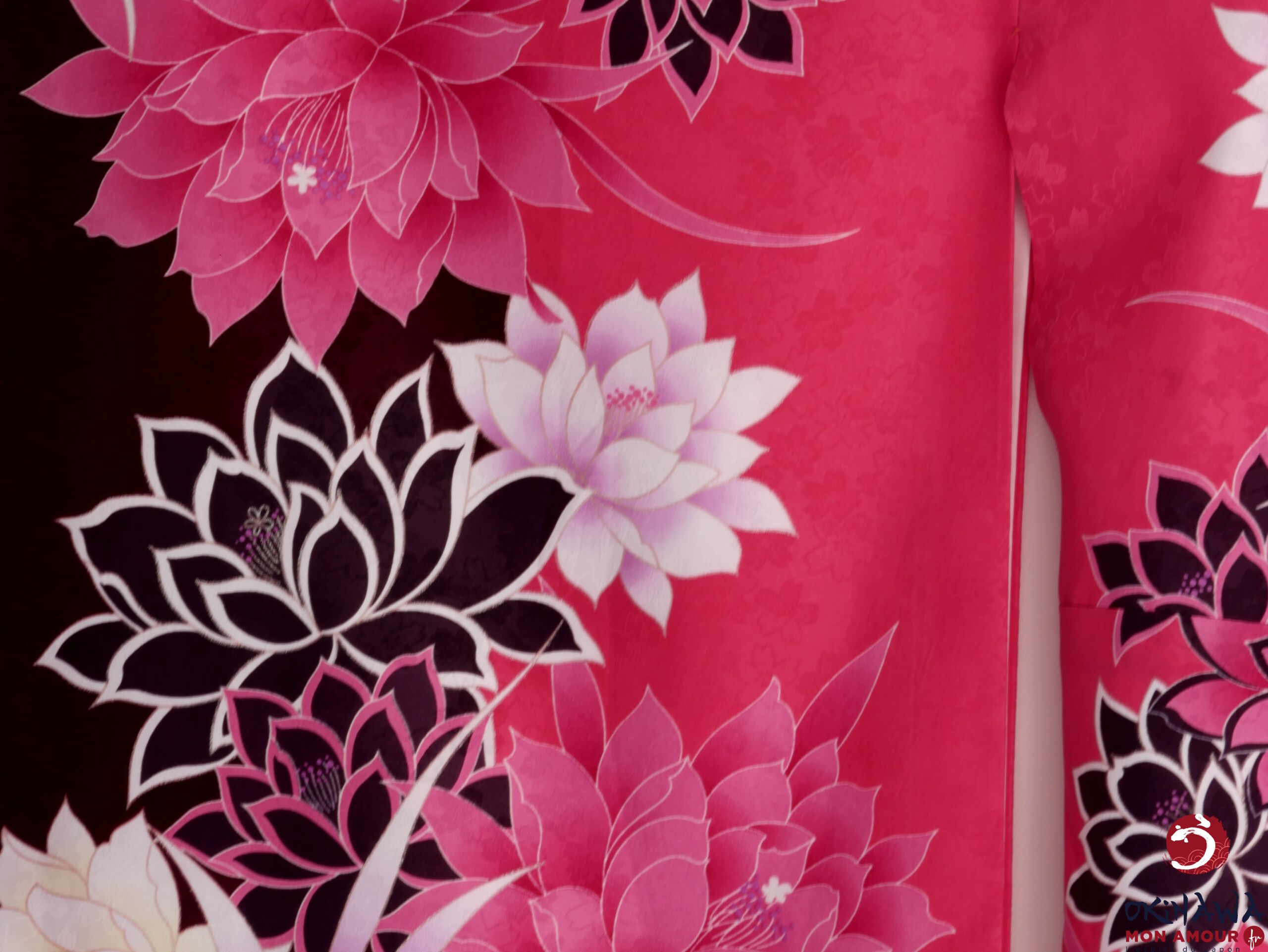 Okinawa-mon-amour-Vêtement-femme-japon-traditionnel-kimono-japonais-moderne-court-fuchsia-fleurs