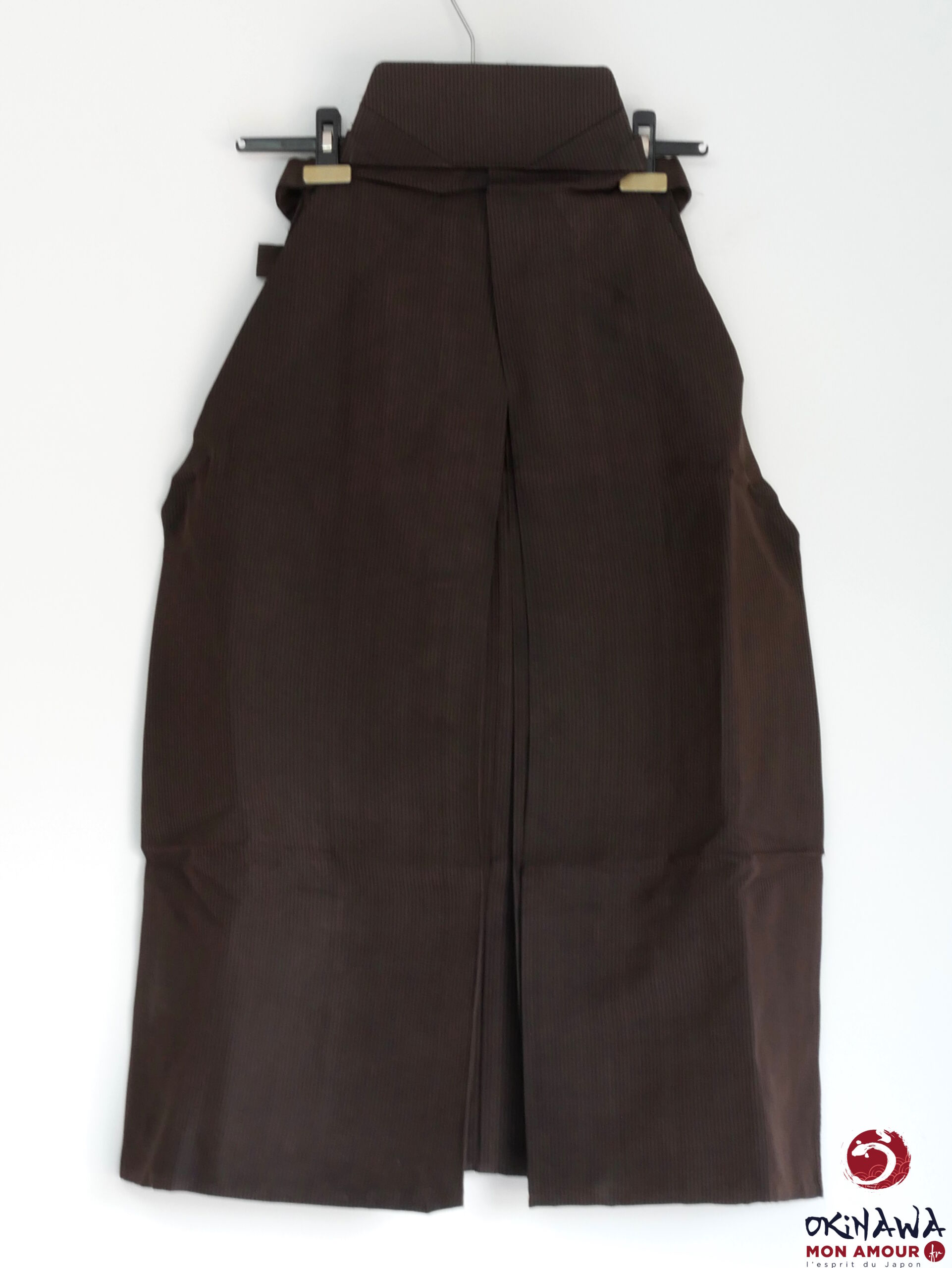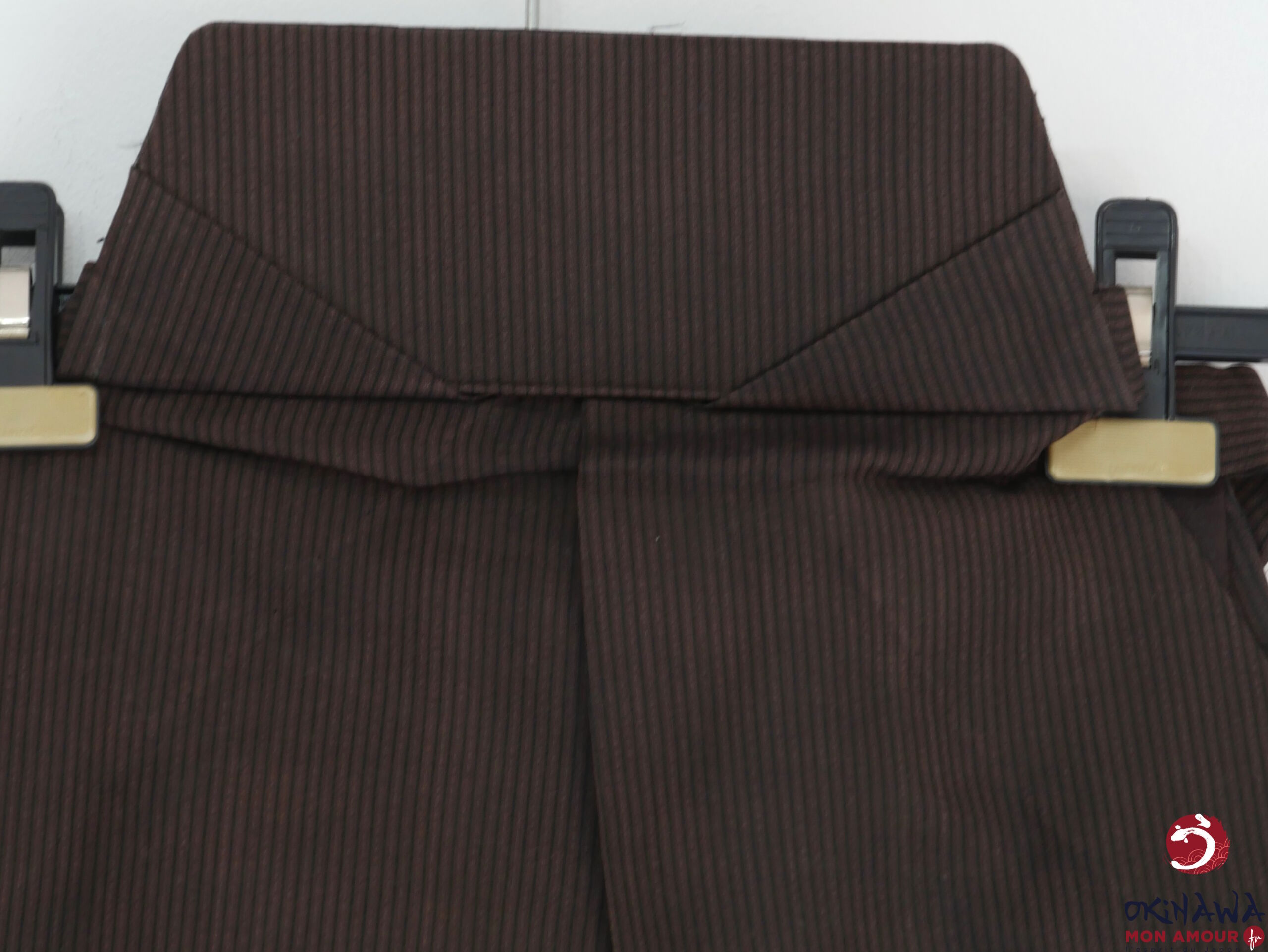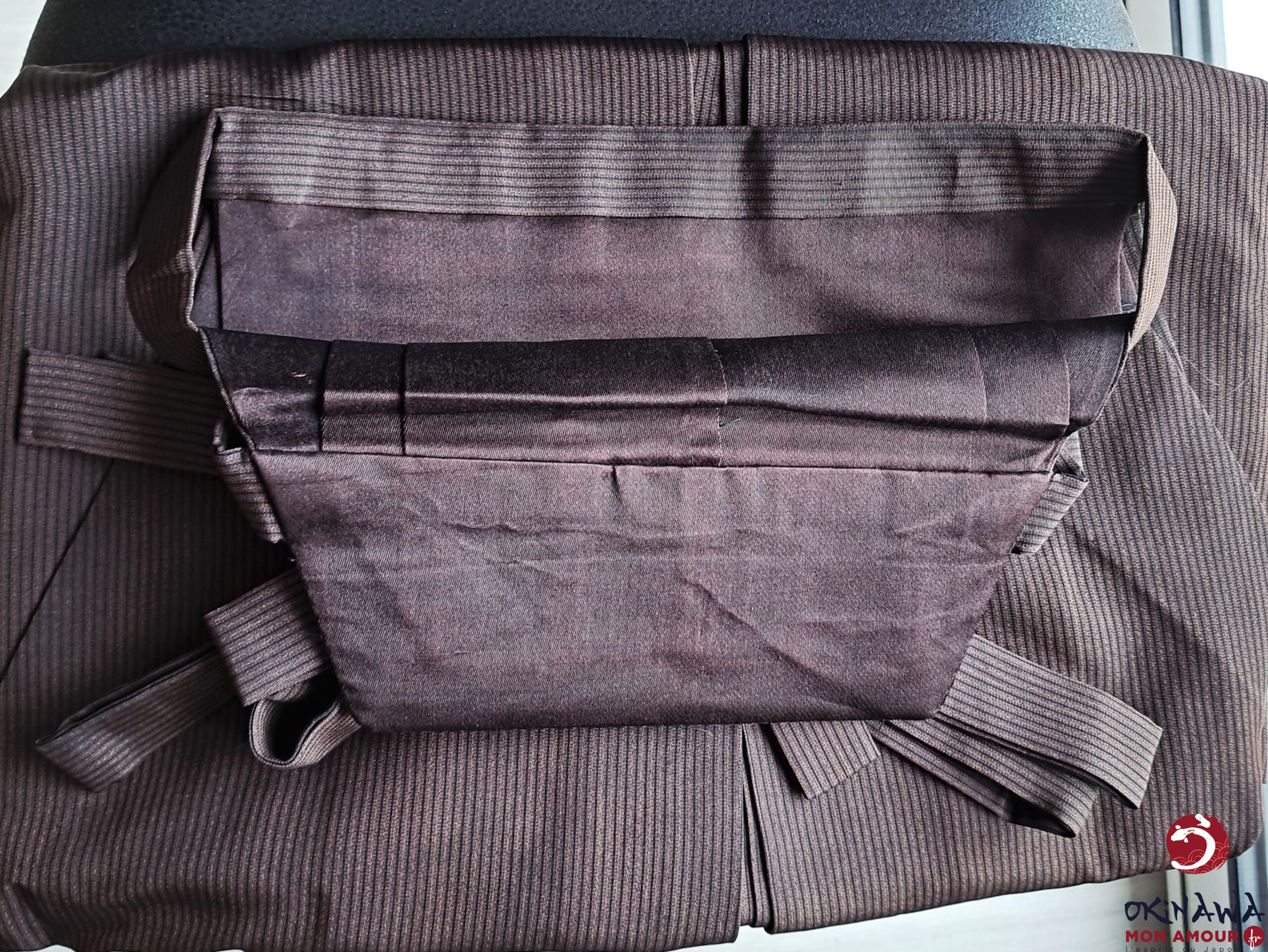 Pantalon / Hakama japonais traditionnel en soie, marron et noir avec un motif à rayure.